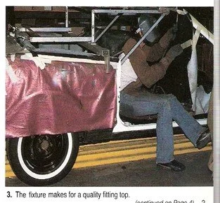 One of the key steps in ASC's conversion process revolves around the use of a birdcage-like structure or fixture. This metal frame fits into the opening and locates critical mounting points on the vehicle. By detecting and compensating for body build variations, each car is assured a quality fitting top.